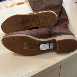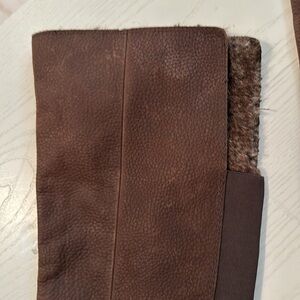 Stylish brown winter boots. Knee-high design. Side zipper for easy wear. Perfect for cold weather.