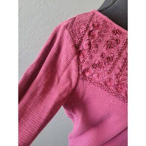 Lucky Brand Burgundy Aztec V Neck Waffle Knit Top Size L 90's Y2K Casual Boho