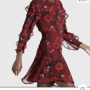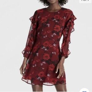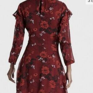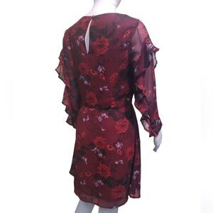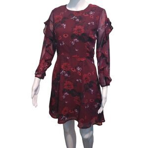 Lucky Brand Burgundy Floral Sheer Long Ruffle Sleeve Dress