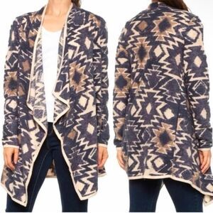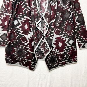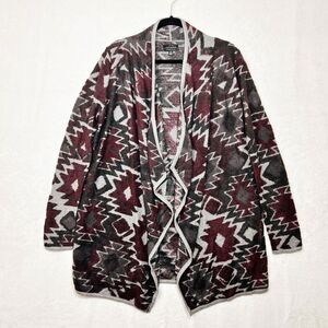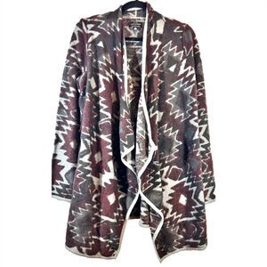 Lucky Brand Burgundy Gray Aztec Print Open Front Cardigan Cotton Blend Small