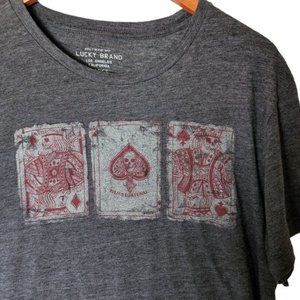 Lucky Brand Burnout Poker Cards Tee Graphic T Shirt L Large Gray