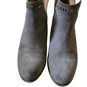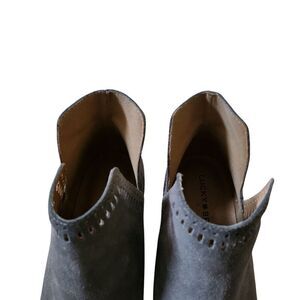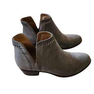 Lucky Brand Bustina Ankle Boots 7.5 Gray Suede Leather Laser Cut Out Booties