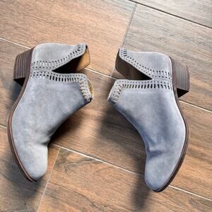 Step out in style with these Lucky Brand Bustina ankle booties! These slip-on booties feature a chic V slit design and are made from soft gray suede, perfect for adding a touch of boho flair to any outfit. They are in great condition and ready for a new home.