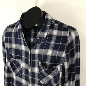 Lucky Brand Button Down Plaid Shirt Women's Large Long Sleeve Pockets Tie Back