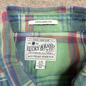 Lucky Brand Button Down Shirt Men's Size L Green Long Sleeve Plaid