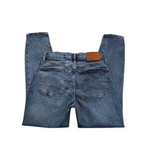 Medium rinse stonewashed skinny jeans. High-waisted. Button fly front closure. Whiskering accents. Sanded detail. Five pockets. Slightly loose front pockets, but otherwise in Great Condition.