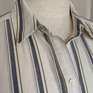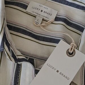 Lucky Brand Button Front Long Sleeve Vertical Striped Cream Blue Olive L NWT