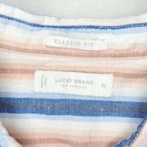 Lucky Brand Button Shirt Mens XL Multicolor Classic Fit Striped Pockets Hemp