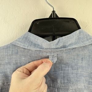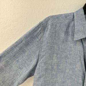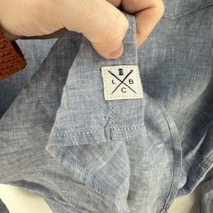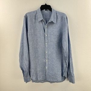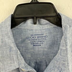 Lucky Brand Button Up Shirt Chambray Linen M Blue California Fit Long Sleeve