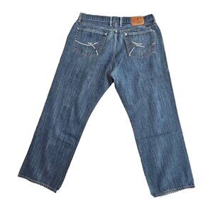 The jeans feature a comfortable mid-rise and a versatile blue fade, making them an ideal choice for an array of occasions. With a size 38x30, these jeans cater to the regular fit, ensuring ease and movement. Crafted from high-quality cotton denim, these jeans are designed with a 5-pocket structure, secured with both a button and zip closure. Accented with the Lucky Brand logo, these trousers are easily maintained with machine washability.