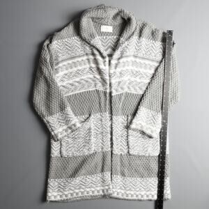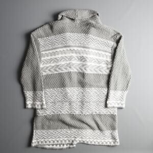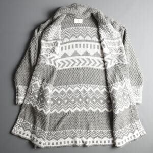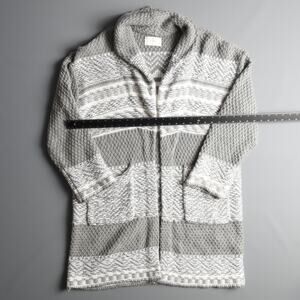 Lucky Brand Cable Knit Open Front Cardigan Womens XL Aztec Gray White