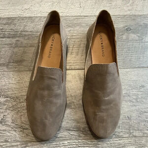 Lucky Brand Cahill Leather Flats. Womens Size 9.5W. Cahill textured leather slip on, featuring an almond toe and slight heel. 0.79 inch heel height. Leather upper, synthetic lining, stacked heel, rubber outsole. See pics for conditions. Gentle used condition. Normal wear. The shoes have been cleaned. No modeling or trades.