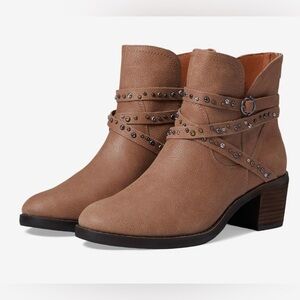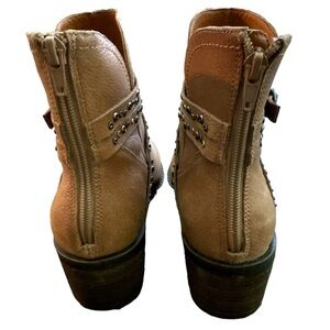 Lucky Brand Callum Studded Strap Ankle Leather Boots Booties Latte Size 9.5 New