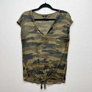 Lucky Brand Camouflage Burnout Lightweight Tie Front Womens Top Size Medium