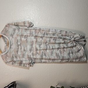 Used-Good Condition! Lucky Brand Burnout Camouflage & Stars T-shirt Dress. Super soft and cozy casual. Can be unknotted.