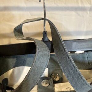 Casual and versatile Lucky Brand tote bag in a faded blue canvas with the brand’s signature 4-Leaf Clover graphic on the front. Features sturdy double shoulder straps, button closure, and a roomy interior – perfect for everyday use, errands, travel, or the gym. Includes Lucky Brand logo charm on the strap for added detail.