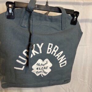 Lucky Brand Canvas Tote Bag – Blue with Four-Leaf Clover Logo