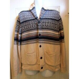 Lucky Brand Cardigan Sherpa Lined Southwestern Grandpa Sweater Shawl Collar L