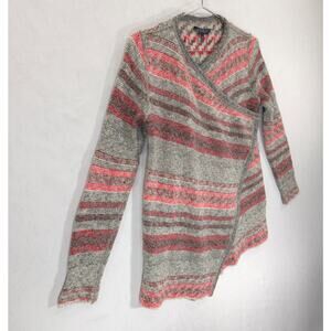 Lucky Brand Cardigan Sweater Womens Small Gray Red Striped Open Front Wrap