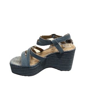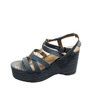 Lucky Brand Carlisha Raffia Desert Sage Sculpted Platform Wedge Sandals Size 7.5