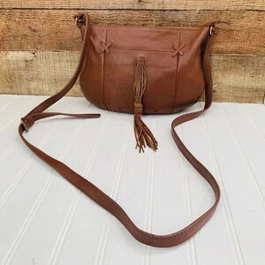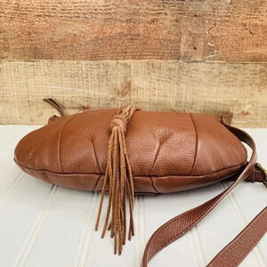 Lucky Brand Carmen Camel Tan Leather Tassel Boho Hobo Shoulder Bag