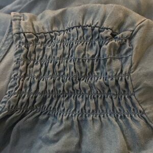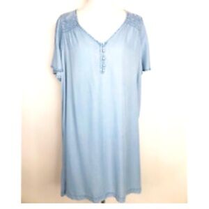 This is a super comfy lightweight pullover dress, 100% lyocell. Elastic smocked shoulders, 4 covered buttons with loop buttonholes on the neckline, functional. Pretty flutter sleeves, color is beautiful faded denim blue. Shirred back yoke. Size 3X, NWT and extra button. Measurements 29 inches pit to pit, and 36 inches shoulder to hem- meant to be oversized and flowy.