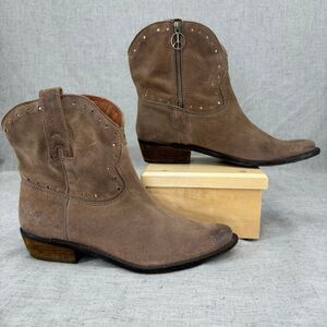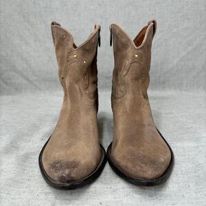Lucky Brand Chantel Booties Taupe Suede Leather Western Cowboy Women's 10