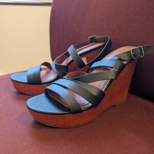 Lucky Brand Charcoal Gray Marina Wooden Wedge Sandals
