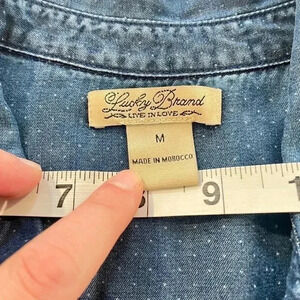 Lucky Brand Charleigh Polka Dot Denim Chambray Shirt SZ M