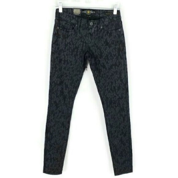 Lucky Brand Charlie Skinny Black Gray Cheetah Print Skinny Jeans Womens 0R/25