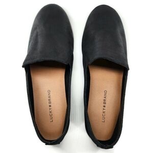 Lucky Brand Charsa 2 Soft Black Nubuck Leather Slip-On Loafer Style Flats