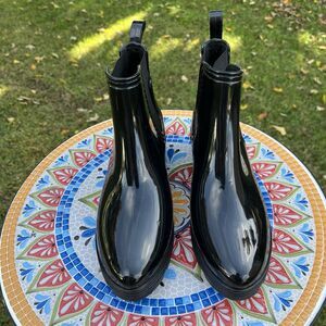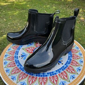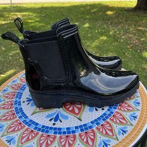 Lucky Brand Chelsea Rain Boots Black Women’s Size 8 Shiny Pull-On Ankle Booties