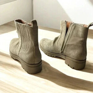 Lucky brand women’s hayzl size 8 1/2 tan suede chunky boot with desert Army combat lug sole. Made with genuine leather and suede.