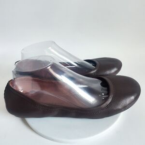 Lucky Brand Chocolate Brown Ballet Flats Size 9 Lace-up Back Coquette Minimalist