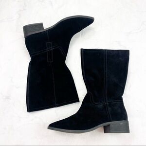 Lucky Brand Classic Black Pointed Toe Boots. Pull On Style. Suede Material. 1" Heel. Cute & Comfy. NWT / New With Tags. No Stains or Rips.