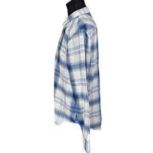 Pre-Owned in Excellent Condition Lucky Brand Classic Fit Blue Plaid Long SLeeve Pearl Snap Button Front Shirt XL