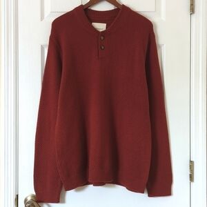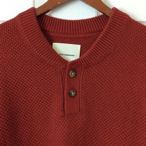 Lucky Brand Cloud Soft Cashmere Blend Classic Knit Henley Sweater Terra Cotta L