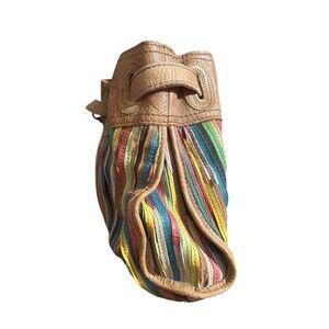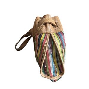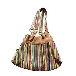 Lucky Brand Cognac Pebble Grain Leather Hobo Shoulder Bag Purse Colorful