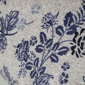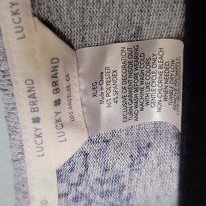 It is tagged as an XL, however it measure more like a medium / large. Does stretch. Soft and fuzzy feel. Gray with blue pattern. Great condition. Neutral, casual, feminine, girly