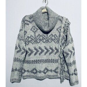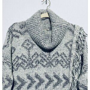Lucky Brand Cowl Neck Fringe Sweater Womens Medium Aztec Print Wool Boho