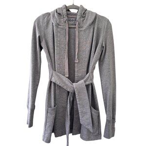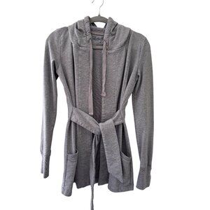 Lucky Brand Cozy Grey Hooded Wrap Cardigan With Tie Waist & Side Pockets
