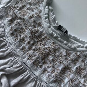 It is sleeveless and features a beautifully embroidered neckline that adds a touch of elegance. The top is in excellent condition and comes from a smoke-free home.