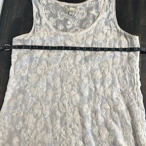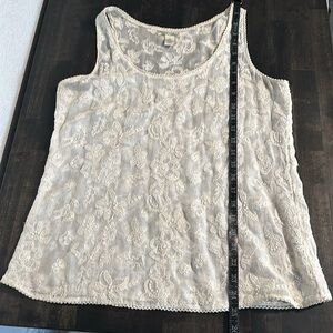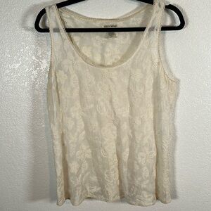 Lucky Brand Cream Gauzy Floral Embroidered Boho Tank Size Medium