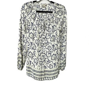 Lucky Brand Cream Long Sleeve Tie Neck Boho Flowy Tunic Size Small GUC