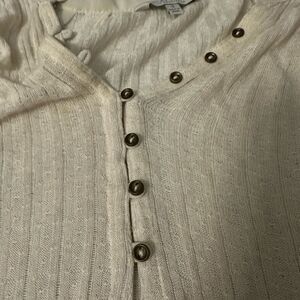 Cream colored Ribbed long sleeve top with button details. Perfect for a chic, casual look. Has a little pull from the hanger. See pics