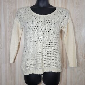 Lucky Brand Cream Open Knit Sweater Sz Lg
