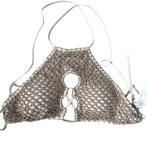 Lucky Brand Crochet Tie Back Strappy Bikini Top in Sand Size Small