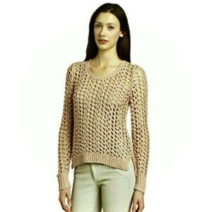 Lucky Brand Gold Tan Wide Crochet Knit Sweater.