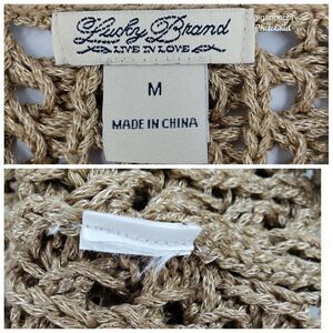 Lucky Brand Crocheted Open Knit Sweater Womens Size Medium Tan Gold Beach
