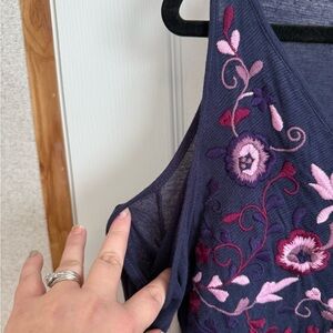 Lucky Brand Dark Blue Top with Pink Floral Design